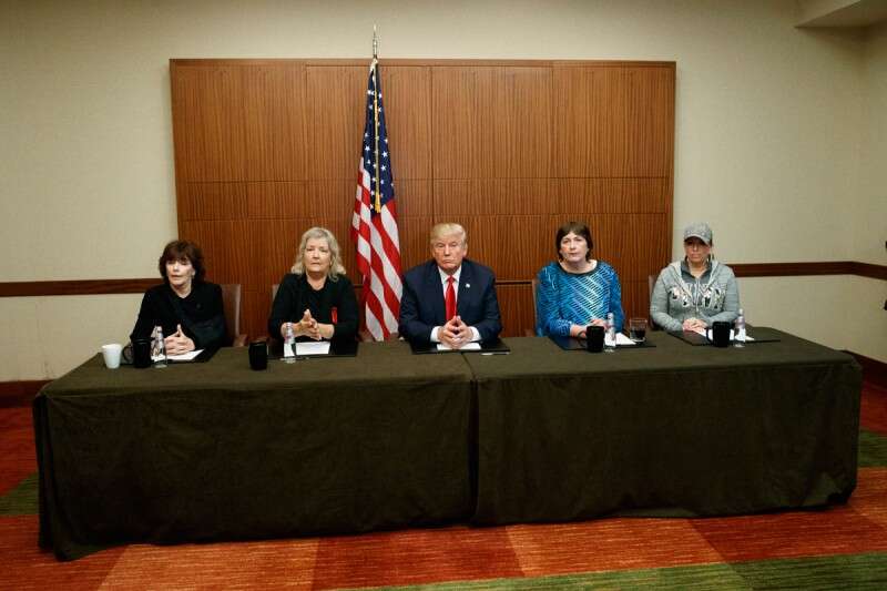 טראמפ וארבע הנשים במסיבת העיתונאים // צילום: אי.פי