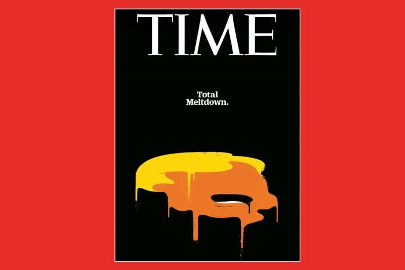 מגזין "Time" פירסם אתמול שער המשך המתאר את המפולת של טראמפ. בשער ב־22 באוגוסט נראה איור של איל ההון נמס, תחת הכותרת "התכה" (Meltdown). בשער החדש צומצם הרפובליקני לכדי שלולית של ממש, תחת הכותרת "התכה מוחלטת" (Total Meltdown).