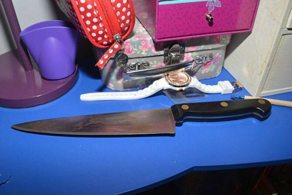 זוג אוהבים – רוצחים בני 15: הרשויות בבריטניה פירסמו תמונה של סכין מטבח באורך 20 סנטימטרים, בו השתמשו נער ונערה כבני 15 כדי לשחוט אישה ובתה.