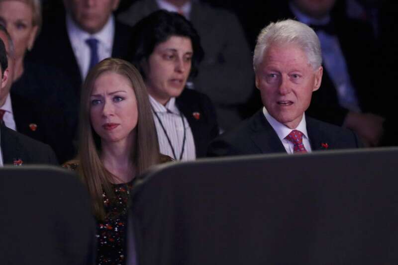 ביל וצ'לסי קלינטון צופים בעימות // צילום: רויטרס