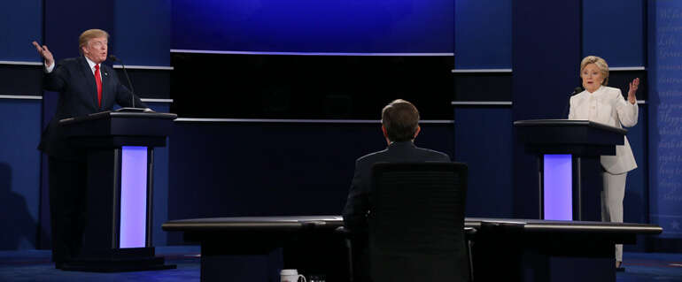 מה באשר להילארי? בעימות ואחריו היא הזכירה כי המפסיד באמריקה תמיד מקבל את תוצאות הבחירות. לגבי ההאשמות של טראמפ כי הדמוקרטים ניסו להלהיט את היצרים באירועים רפובליקניים, אמרה קלינטון שהיא לא יכולה להתייחס לזה והיא לא יכולה להגיב לכל הצהרה הדנה ב"תיאוריית קונספירציה". היא לא מתייחסת לחשיפות של ויקיליקס שלא מפסיקות להגיע, כולל גילויים על אי־סדרים לכאורה בקרן קלינטון, אבל זה רחוק מליצור כותרות.