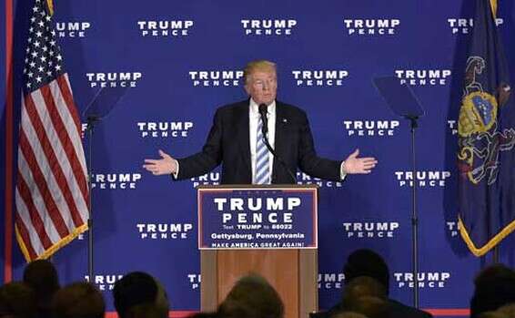 בנאומו בגטיסבורג, פנסילבניה, טען טראמפ שוב כי מערכת הבחירות מוטה ומושחתת: "היה צריך למנוע מהילארי קלינטון להתמודד, אבל ה-FBI ומשרד המשפטים מחפים על פשעיה". טראמפ אמר עוד בפתח נאומו כי מעולם לא רצה להיות פוליטיקאי אך לא יכל עוד להתבונן בצד במדינתו שקועה בצרה. ""קלינטון לא רצה נגדי, היא רצה נגד השינוי, נגד אזרחי ארצות הברית ונגד המצביעים", הוסיף.