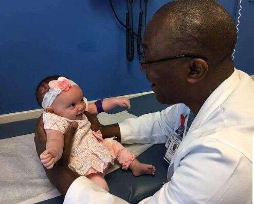 "הרופאים זיהו משהו בסריקה" סיפרה האם, "והרופא בא ואמר לנו שיש משהו מאוד לא בסדר עם התינוקת שלנו. הוא אמר שיש לה 'טרטומה'" (teratoma sacrococcygeal).