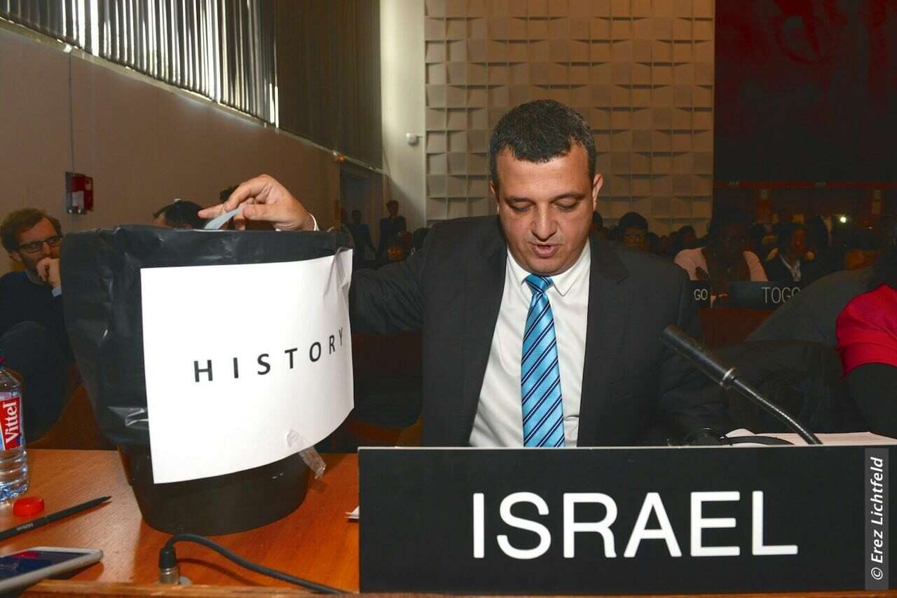 נציג ישראל באונסק"ו כרמל שמה הכהן, אמר בנאום מרגש: "הרגע אימצתם עוד החלטה אבסורדית כנגד ישראל, נגד העם היהודי, נגד האמת ההיסטורית ונגד כל הערכים שהארגון המתפרק הזה אמור לייצג, כל זאת בשעה שכוחות האסלאם הקיצוני משמידים היסטוריה ומורשת של עמים רבים, מסגדים, כנסיות, אתרים ארכיאולוגיים, ובעוד שישראל היא המדינה היחידה באזור ששומרת עליהם ומאפשרת חופש פולחן לכל הדתות. הקרב על ירושלים לא התחיל בהצבעה הקודמת וגם לא נגמר בהצבעה היום, אנחנו נמשיך ותמיד נעדיף להיות הריבון בירושלים בעוד הפלסטינים ומדינות ערב ימשיכו להשתעשע בהחלטות אבסורדיות ודמיוניות, שמביישות את מי שהציעו אותן ואת מי שאישרו אותן".