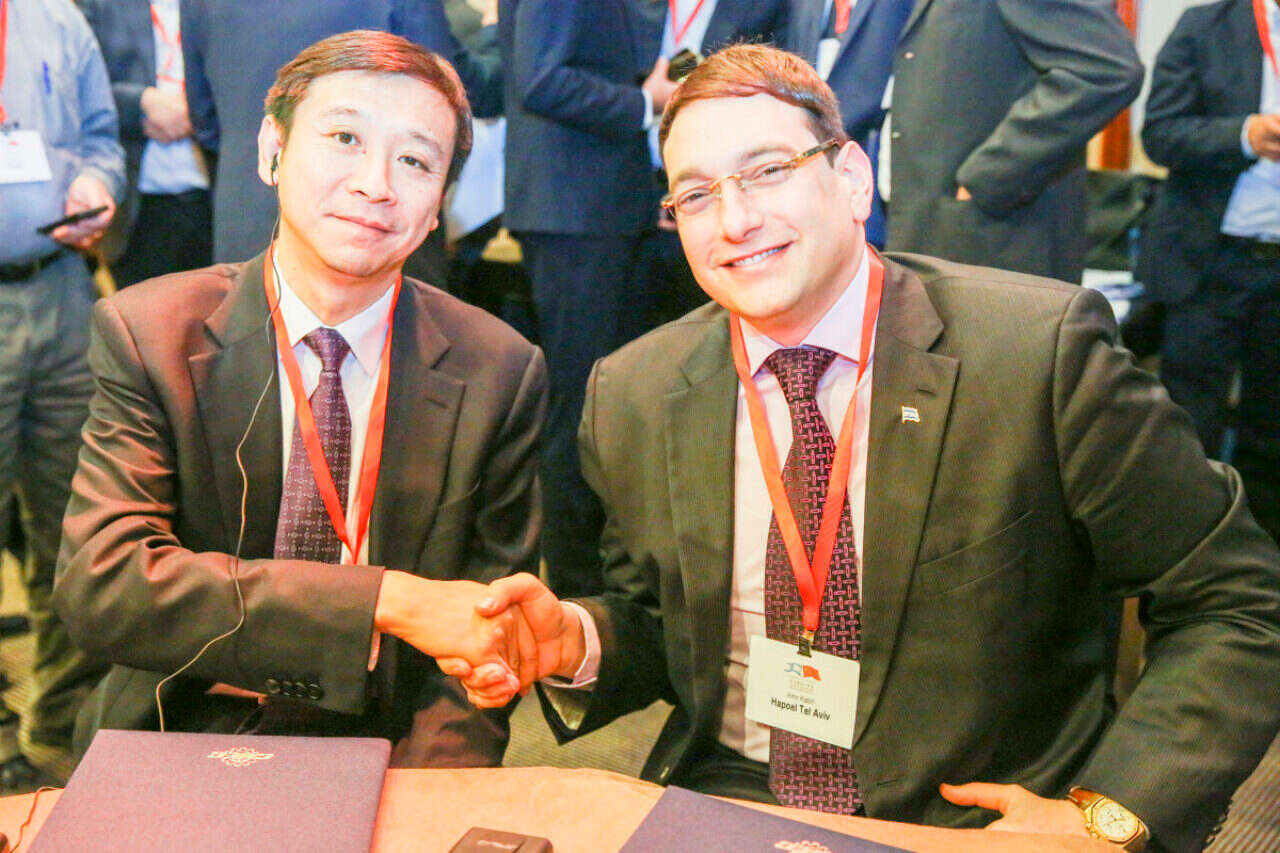 עיסקת שיתוף הפעולה בין הפועל ת"א לבין התאגיד הסיני CMEC נחתמה הבוקר באופן רשמי באירוע חגיגי ב במלון דן פנורמה במסגרת הפורום הכללי ישראל - סין בארגון משרד רוה"מ ומכון היצוא. זאת אחרי שבסוף חודש אוגוסט הצדדים חתמו על מזכר הבנות.