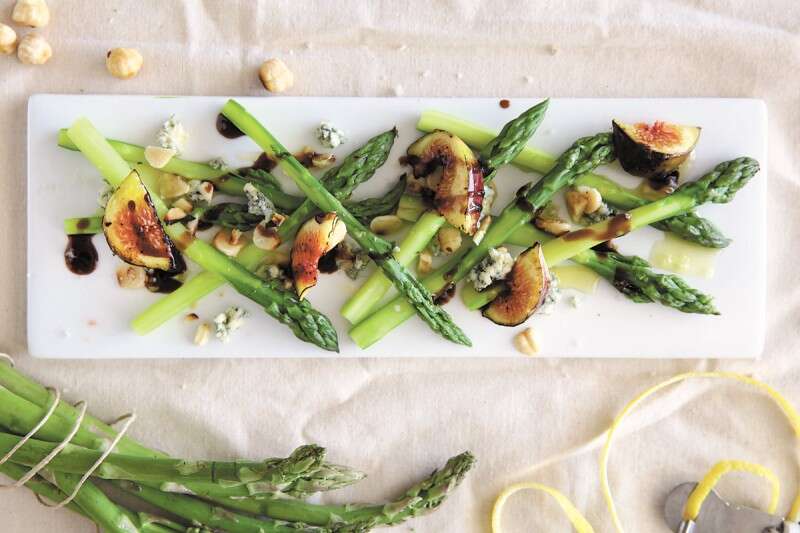 אספרגוס מאודה עם גבינה כחולה, אגוזי לוז, תאנים, שמן זית ובלסמי // צילום: לירון אלמוג