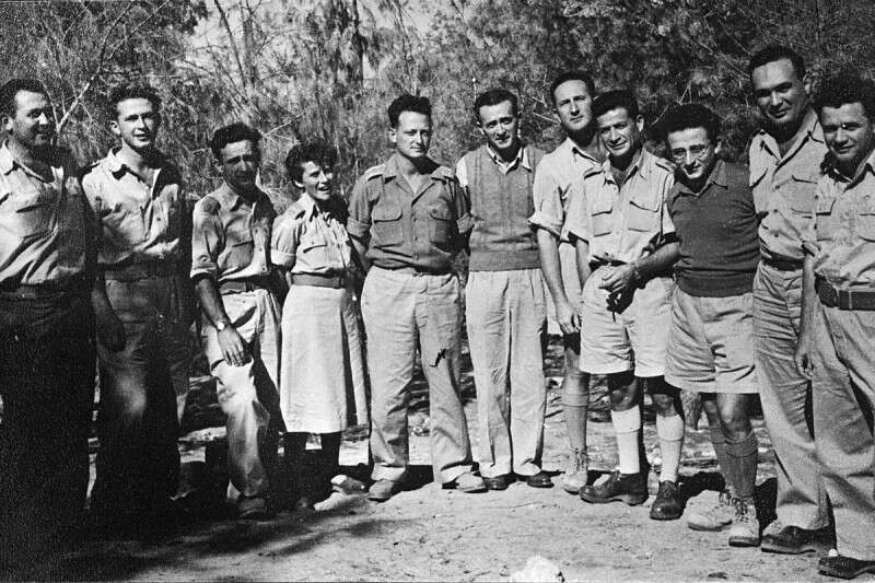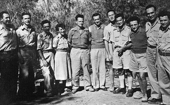 צילום: לע"מ // בתמונה: מפקדי הפלמ"ח בצילום קבוצתי, במרכז - יגאל אלון, שני משמאל - יצחק רבין