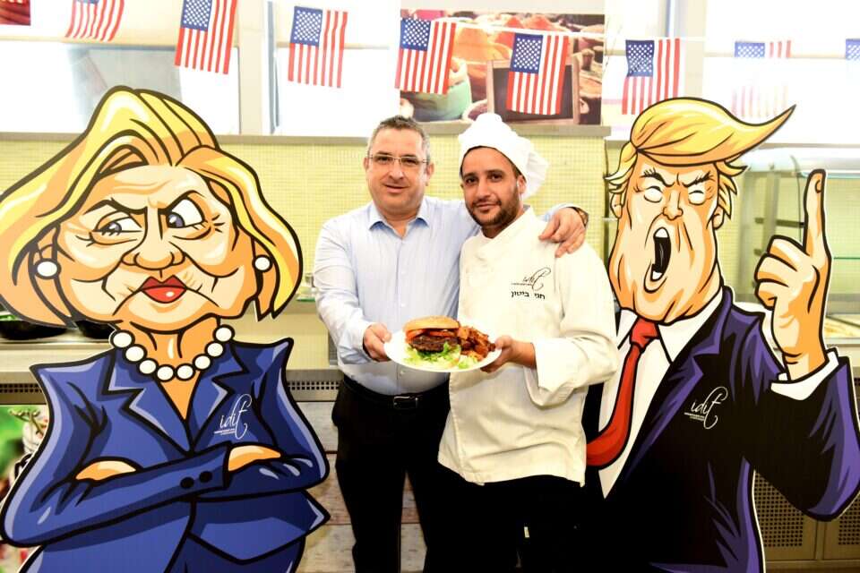 עובדי חברת "אלביט" ציינו את יום הבחירות בארה"ב בארוחה בסגנון אמריקני • בתפריט: המבורגרים, קנטאקי פרייד צ'יקן, קורנביף, עופות בסגנון ברביקיו, אסדו טקסס והמון צ'יפס