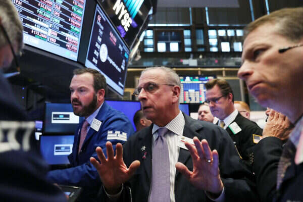 סוחרים בבורסה בניו יורק צופים בנאום ההפסד של קלינטון // צילום: רויטרס
