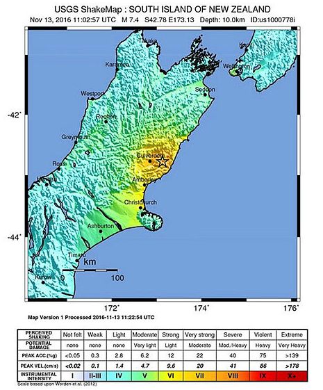 מוקד הרעש היה 91 ק"מ מצפון-מזרח לעיר כרייסטצ'רץ'. לא ברור אם יש נפגעים. ב-2011, נהרגו עשרות בני אדם, ברעידת אדמה שהתרחשה בעיר כרייסטצ'רץ', בה נהרסו גם מבנים היסטוריים רבים.