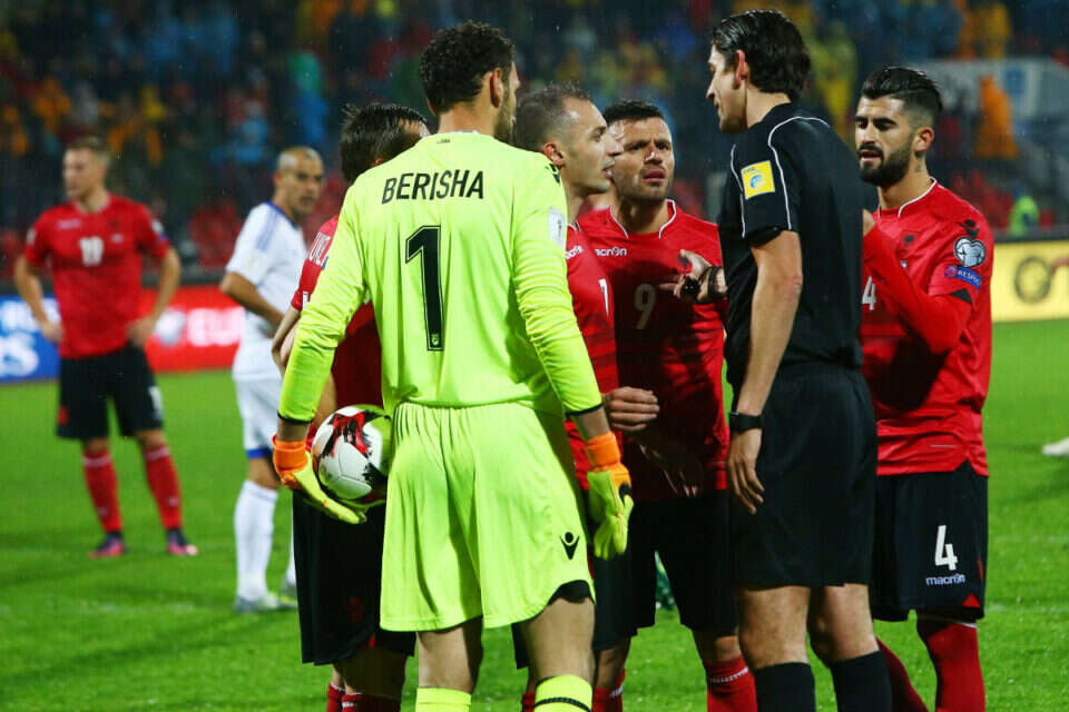 מאמן אלבניה, ג'יאני דה ביאסי, לקח קשה מאוד את התבוסה 3:0 לנבחרת ישראל. בטקס ששמור למאמנים עם בטן מלאה הוא סיפק לעיתונאים המקומיים תשובות קצרות, ללא צנזורה, היה חסר סבלנות ונטש את עמדת הראיונות במהירות ובלי שנפרד לשלום.