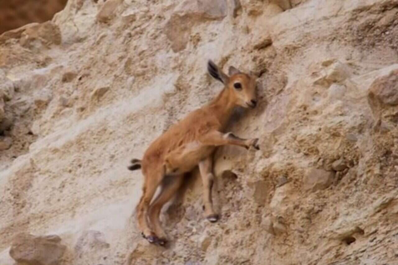נפלאות הטבע: גור היעלים שנמלט משועל כבש את הרשת