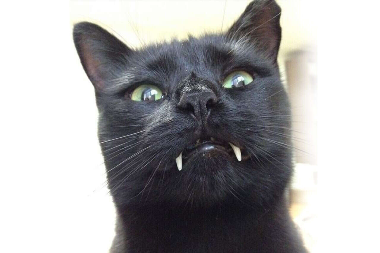 הכירו את מנקי, החתול השחור עם שיני הדרקולה שנראה כמו דמות מסרט אימה או לפחות כאילו התחפש בפורים. החתול מתגורר בניו יורק עם הבעלים שלו, והשיניים שלו הן לגמרי אמיתיות.