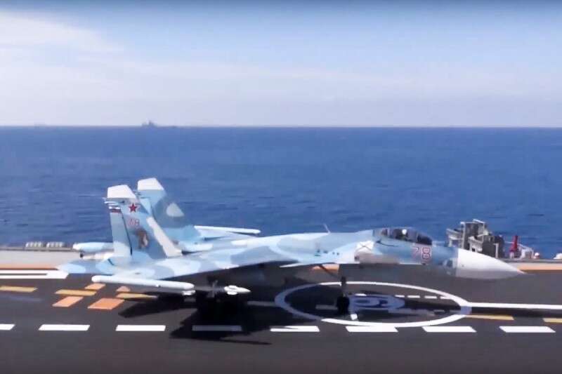 מטוס על נושאת המטוסים אדמירל קוזנצוב // צילום: אי.פי