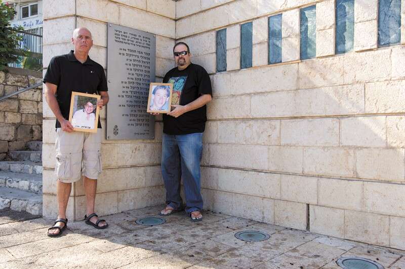 יוסי צור ורון קרמן באנדרטה לפיגוע בקו 37 // צילום: מישל דוט קום
