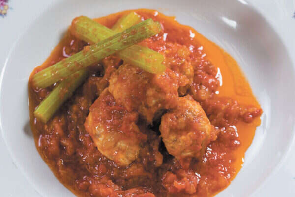 בכפות ידיים רטובות לוקחים מידה של אגוז מתערובת הבשר ויוצרים קציצות מחודדות בקצה אחד. מכניסים לרוטב העגבניות, מוסיפים את מקלות הסלרי וממשיכים לבשל על אש קטנה עד שיעלה השמן על פני הרוטב והקציצות יהיו מוכנות. אם חסר רוטב, מוסיפים מהמים הרותחים שבהם בישלנו את מקלות הסלרי. רק עכשיו ממליחים, טועמים ומוסיפים מלח לפי הצורך והטעם.