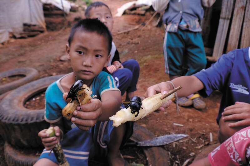 בתיאבון. הילדים משחקים עם חיפושיות המחמד שלהם // צילום: אדי גרלד