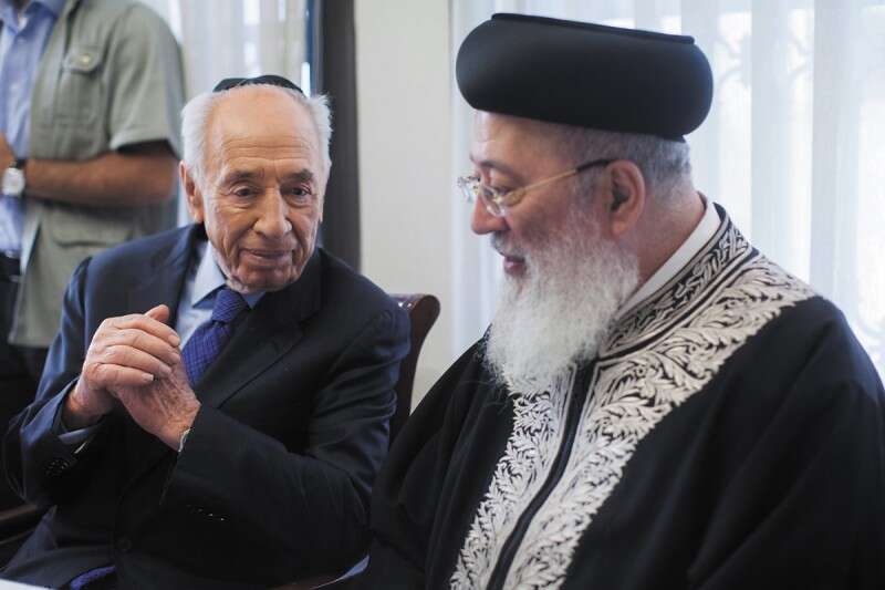 "אני לא מתגאה על החילונים, אבל אני אוהב אותם, מעריך אותם". בפגישה עם שמעון פרס ז"ל // צילום: יונתן זינדל