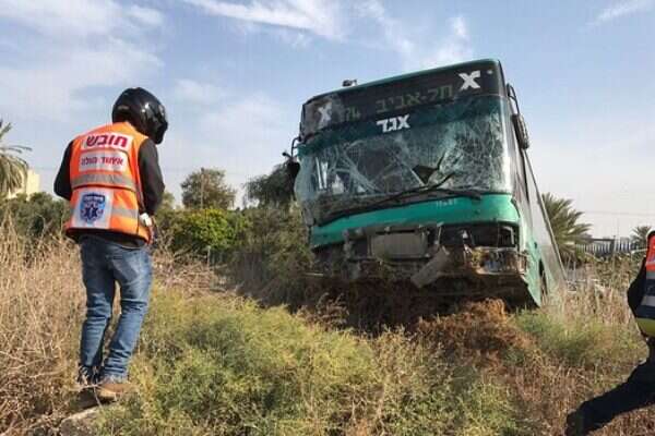 אחד האוטובוסים המעורבים בתאונה בצומת חולון // צילום: אלירן אביטל - תיעוד מבצעי מד"א