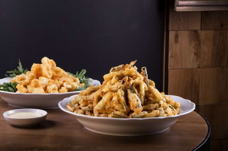 בין המנות: קפרזה - עגבניה, בזיליקום ומוצרלה (68 שקלים), קריספי קלמרי (105 שקלים ל-400 גרם) או טסטה פרמז'נו - ראש כרובית שלם מטוגן בציפוי פרמזן (62 שקלים), סלטים עם סלט ירוק (52 שקלים) או פנצלה - ירקות עם קרוטונים (67 שקלים), בשר ועוף עם 2 מנות של צ'יקן פרמזן (87 שקלים) ועוד.