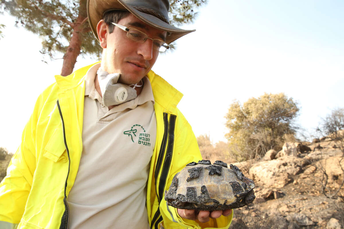 בתוך האש העזה, שחורכת אזורים רבים כל כך ברחבי הארץ, נמצאים גם בעלי החיים. פקחי רשות הטבע והגנים עסקו שלשום ואתמול בסיוע לכוחות בשטח בכיבוי האש באזור זכרון יעקב, ואתמול הגיעו גם לאזור בנטף כדי לסייע בכיבוי השריפה שכילתה אלפי דונמים בשמורת הכפירה, כדי למזער ככל האפשר את הנזקים האדירים לחי ולצומח. אתמול, במהלך השריפה באזור נטף, הבחין אחד מפקחי הרשות בצב שנפגע מהשריפה - והצליח להצילו. הצב יועבר לטיפול בבית החולים לחיות בר של רשות הטבע והגנים והספארי ברמת גן.