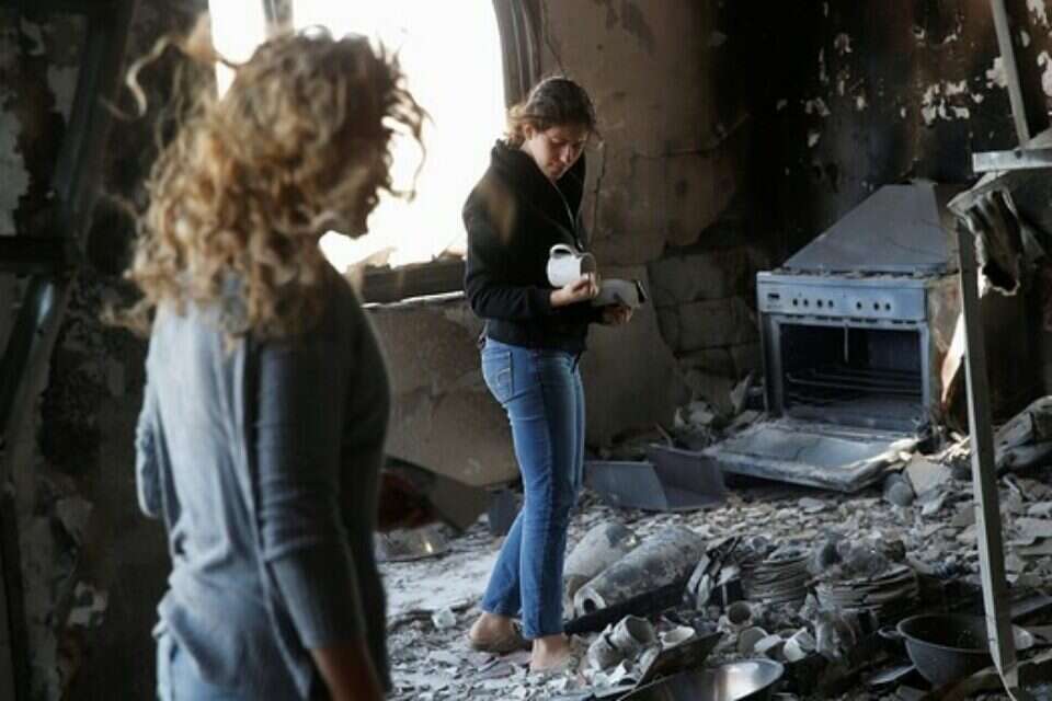 בדיוק כאלה היו רגעי החזרה הביתה עבור אייל ורלי גולן, הורים לשלושה, שביתם ברחוב התפוח בזכרון יעקב הפך למפויח וכך גם הבריכה שבחזית החצר. בדרך לקומה השנייה דורך גולן על זכוכיות שבורות ועצים שרופים, ובאוויר עומד ריח נורא של פיח. בחדר של בתו בת ה־12 זרוקות על הרצפה חתיכות מפויחות של מה שהיה בעבר מצלמה. גולן מחזיק אותה בידו ואומר: "קניתי לה את זה במתנה, היא כל כך שמחה, ותראי למה זה הפך". ביציאה הוא מראה כד חרס מפויח עם מטבעות בתוכו, "הילדה שלי בכתה, היא אספה את המטבעות באהבה. אמרתי, 'אל תדאגי אבא יציל אותם', והנה, הם שרדו".
