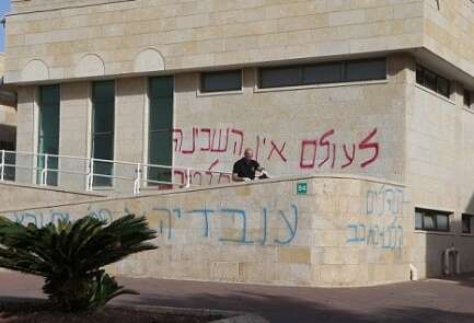 The Kehilat Raanan Reform synagogue in the central Israeli city of Raanana was vandalized Thursday. Alongside hate graffiti referencing Bible verses saying that evil people have no place in the world to come, were three envelopes bearing the words "Maimonides, the Laws of Murder." A knife and the names of three Reform leaders -- Anat Hoffman, director of Women of the Wall and executive director of the Israel Religious Action Center; Gilad Kariv, executive director of the Israel Movement for Reform and Progressive Judaism; and Rabbi Rick Jacobs, president of the Union for Reform Judaism, the congregational arm of the Reform movement in North America -- were found at the scene. The Israel Police have launched an investigation into the threats. The incident prompted a wave of condemnations. Prime Minister Benjamin Netanyahu said: "I strongly condemn the graffiti discovered this morning at the Reform synagogue in Raanana. Such acts have no place in our free society." Kariv said: "The repeated attacks on the synagogue in Raanana prove that we aren't talking about an isolated incident, but a violent phenomenon that must be handled seriously and thoroughly. On the public and educational level, 'price tag' attacks [like this] will not stop us from serving a public of thousands of families in Raanana who are interested in tolerant, egalitarian Judaism." He called on the Orthodox rabbis of the city and the city elders to come to the synagogue to send a clear message of protest. "In recent weeks, the Reform Movement headquarters has been contacted by residents of four new communities in the Sharon region who are interested in establishing Reform synagogues there. This is our answer to those terrorists who respect neither the law nor God," Kariv said. Hoffman called the knife left at the scene "the direct result of the evil winds blowing against the implementation of the Western Wall prayer plaza plan [to build an egalitarian prayer space at the Western Wall] on the part of the heads of the haredi parties and haredi rabbis, who do everything they can against anyone who is different from them. The threat of murder is meant to scare and stop us, but our spirit won't break. We'll continue to protect the women of Israel from the winds of hatred and discrimination that are blowing unchecked in Israel." Kehilat Raanan Rabbi Tamar Kolberg said, "It's hard to grasp how shocking the sight of the graffiti that has marred the building's facade is. The shock is even worse when you read the quotes on the wall." The Beit Hillel rabbinical association condemned the vandalism, saying: "Acts like these go against the foundations of the Torah. They do nothing to honor God, they just cause a great desecration."