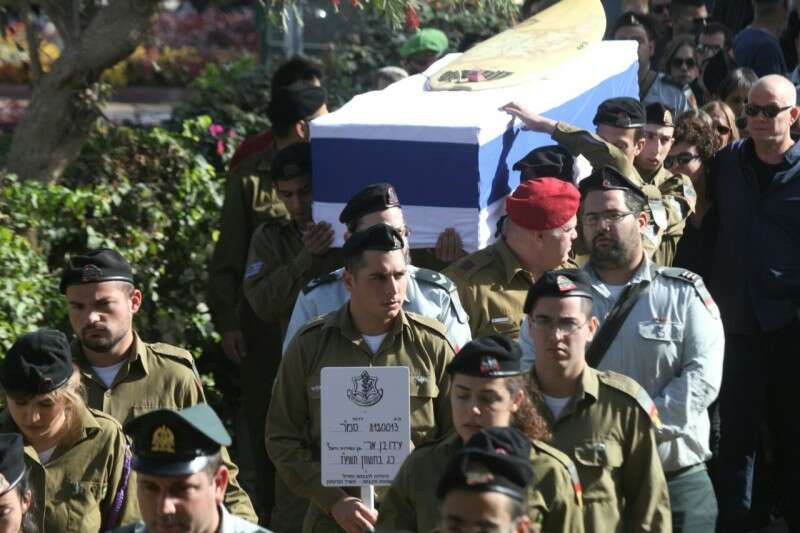 חיילי החטיבה של בן ארי ז"ל נושאים את ארונו // צילום: גדעון מרקוביץ'