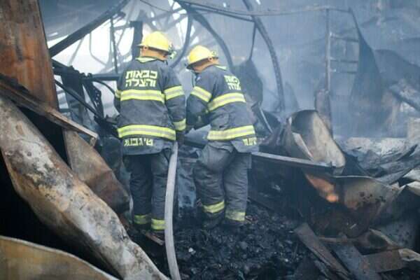 התושבים שחזרו הזדעזעו. לוחמי האש בזירת השריפה // צילום: אורן בן חקון
