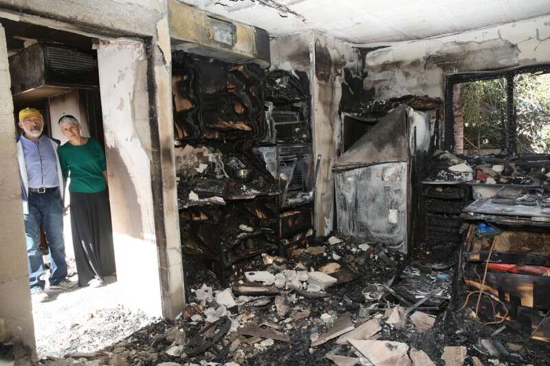 אמי ומיכאל רוזנבל בביתם השרוף בנוה צוף - חלמיש // צילום: מירי צחי