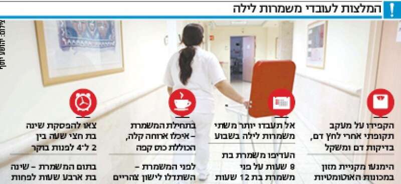 עובדי משמרות לילה ישנים בממוצע 25% פחות מעובדי משמרות יום ונמצאים בסיכון גבוה יותר לבעיות בריאות, כך עולה מנייר עמדה ראשון מסוגו שגיבשו בעמותת הדיאטנים והתזונאים עתיד, בייעוץ מדעי של רופאי שינה וחוקרי תזונה. על פי המסמך, לעובדי משמרות לילה מומלץ להקפיד על מעקב תקופתי אחרי ערכי לחץ דם, בדיקות דם ומשקל.