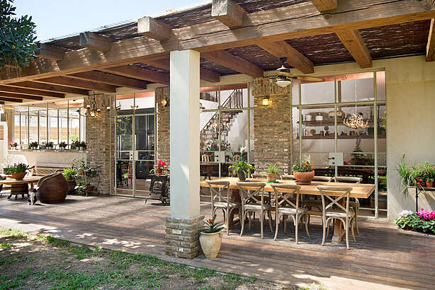 את האווירה הטבעית שיצרה שני במעטפתה חיזקו והשלימו הרהיטים ואלמנטים משלימים כדוגמת מדפי עץ. שני והדיירים בחרו יחדיו גזע אקליפטוס ענק ופילחו אותו לארבע פלחים.