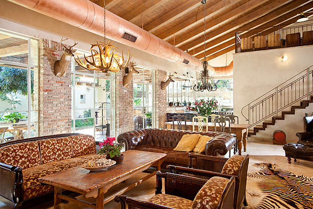 בשל אהבתם העזה לסגנון, הביאו עמם הדיירים רהיטים מקומיים אליהם נקשרו בארה"ב. המשמעות היתה התאמת החלל הנתון לרהיטים עצמם. בין היתר נתלו פוחלצים שבעל הבית עצמו צד במסעותיו לאפריקה וצפון קרוליינה.