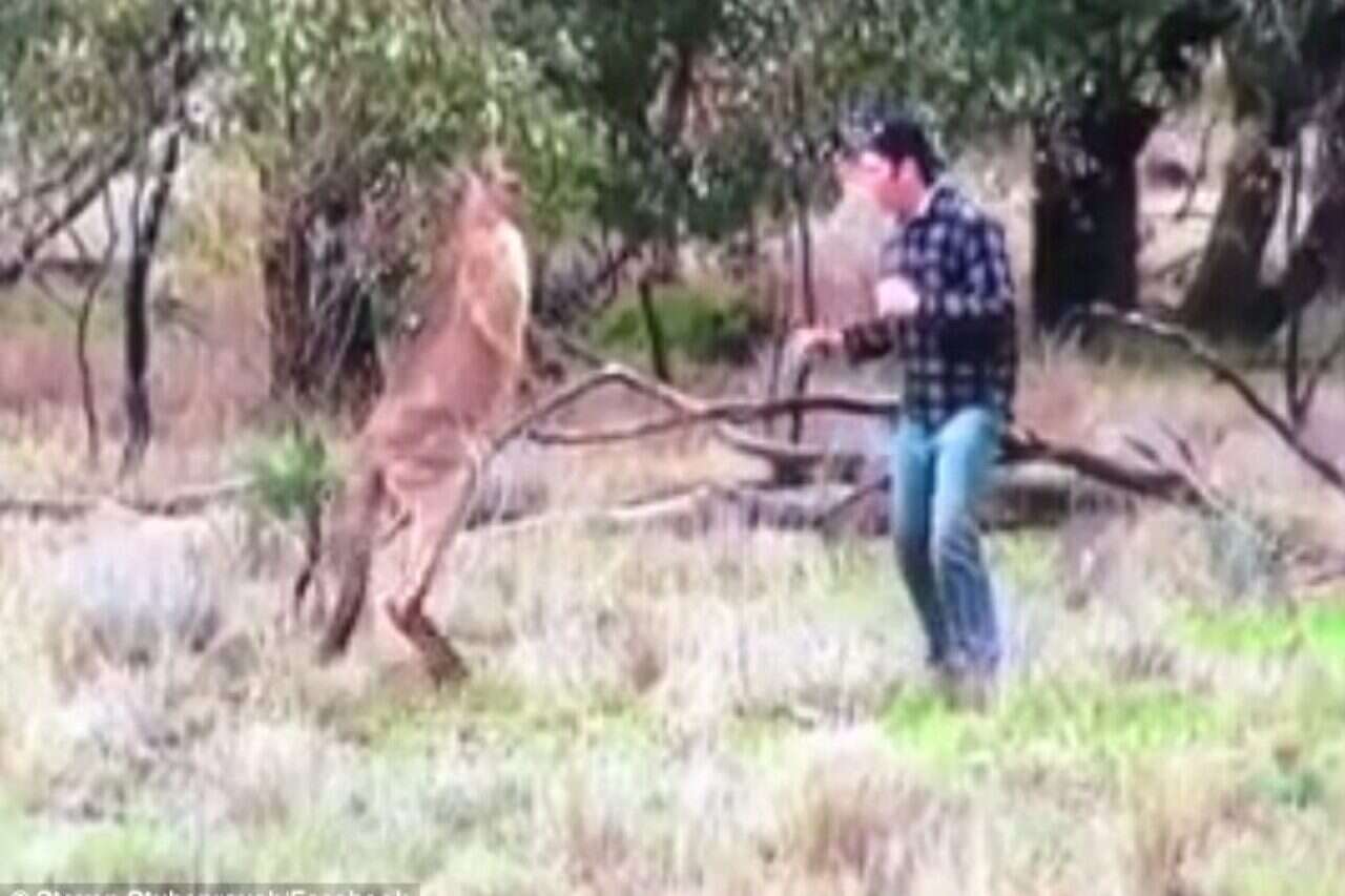 הקנגורו תפס את הכלב וחנק אותו, הבעלים של הכלב ניגש מיד אל הקנגורו, חילץ את כלבו וניצב לקרב מול הקנגורו, חיה נפוצה מאוד ביבשת אוסטרליה שנחשבת למסוכנת.