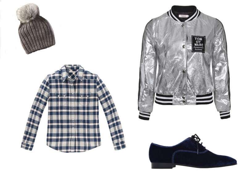 ג'קט כסוף FOREVER YOUNG // צילום: ניר יפה נעלי קטיפה כחולות צ'ארלס & קית' //צילום: יח"צ חולצת משבצות LEE // צילום: עופר בארי כובע צמר אמריקן איגל // צילום: יח"צ
