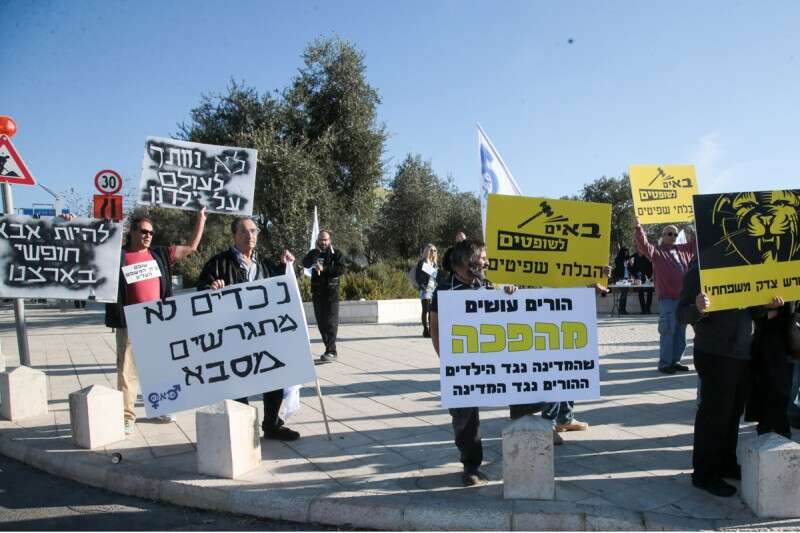 הפגנת אבות מחוץ לבית המשפט העליון, השבוע // צילום: אורן בן חקון