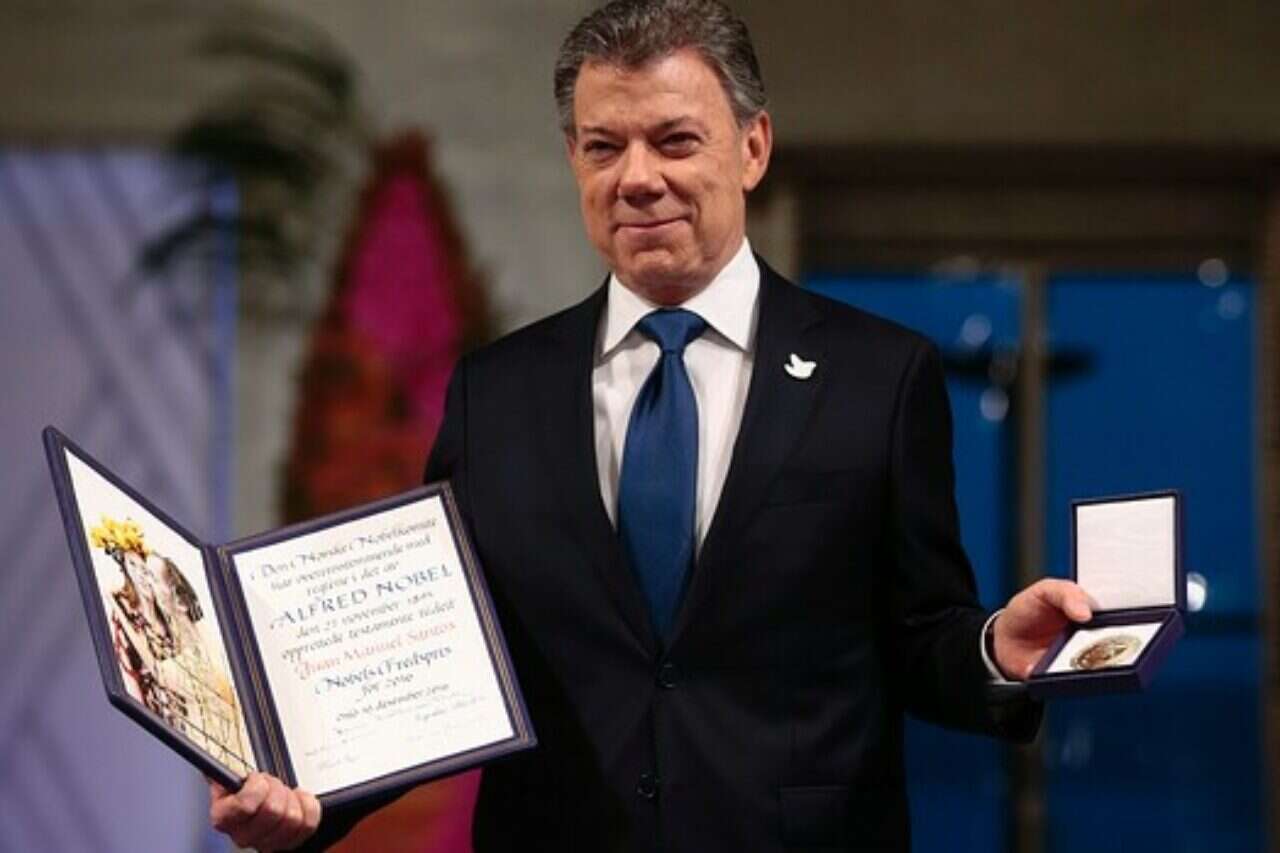 נשיא קולומביה חואן מנואל סנטוס קיבל היום את פרס נובל לשלום באוסלו, נורבגיה. סנטוס קיבל את הפרס על תרומתו לסיום מלחמת האזרחים במדינתו.