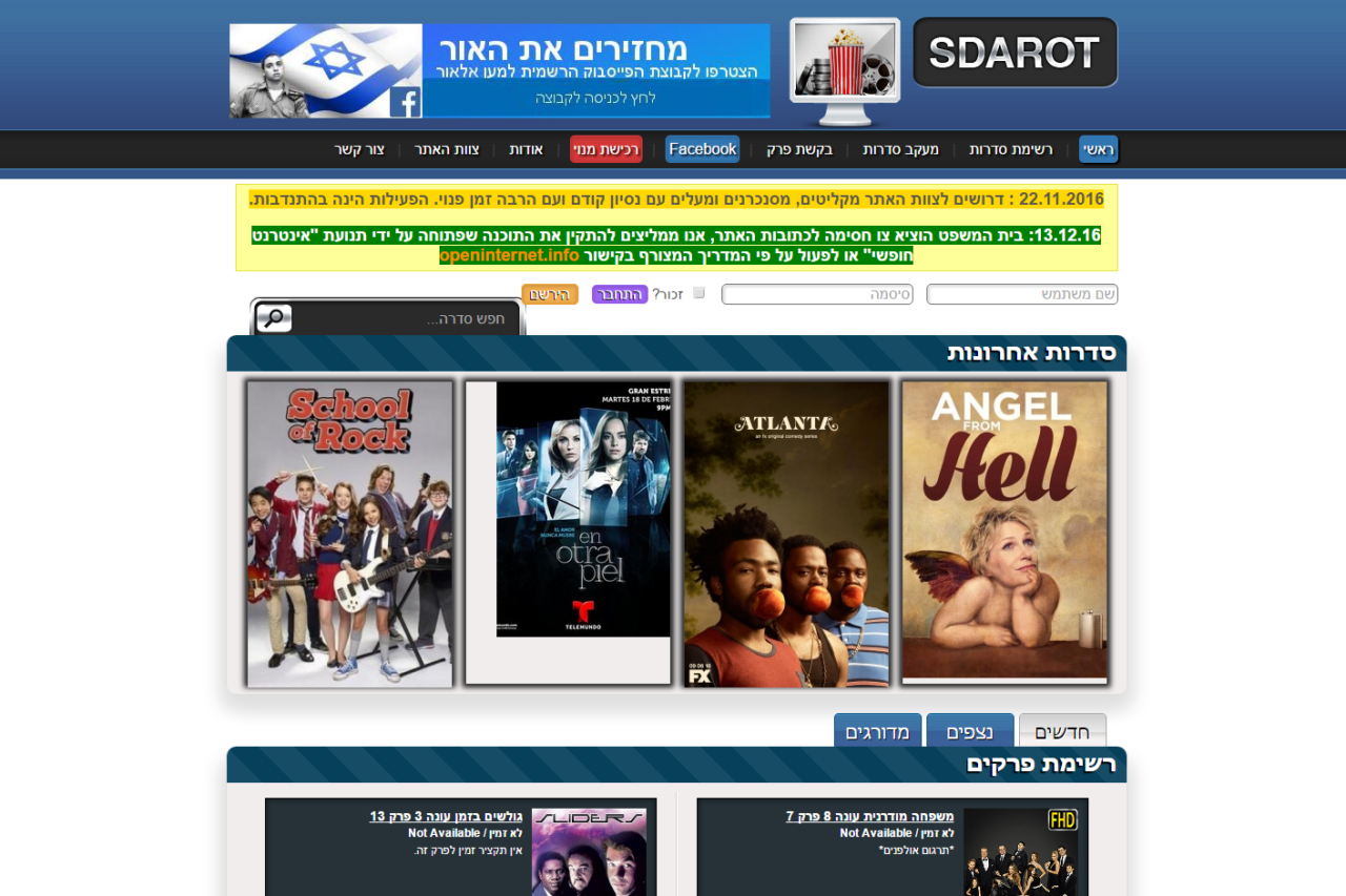 צו חסימה לאתר התוכן הפיראטי sdarot