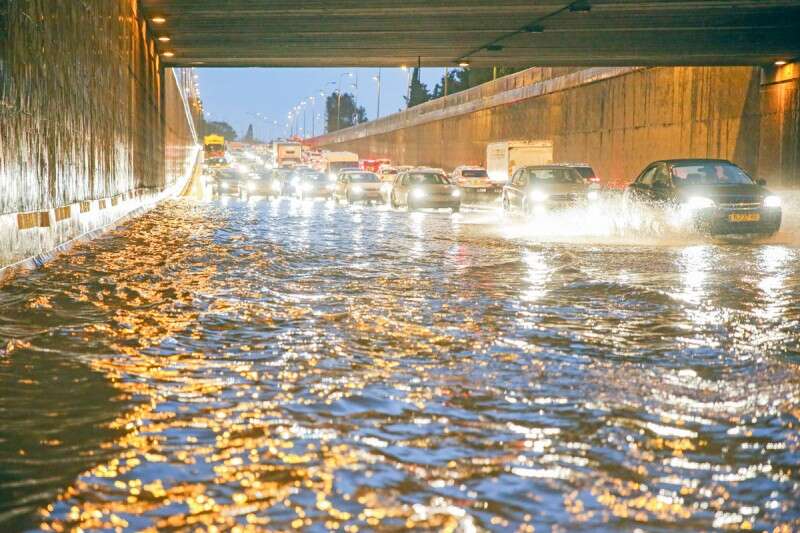 הגשמים אחר הצהריים הציפו גם את כביש החוף // צילום: יהושע יוסף