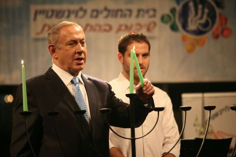 נתניהו באירוע הדלקת נר ראשון. הערב בחוות רונית // צילום: גדעון מרקוביץ'