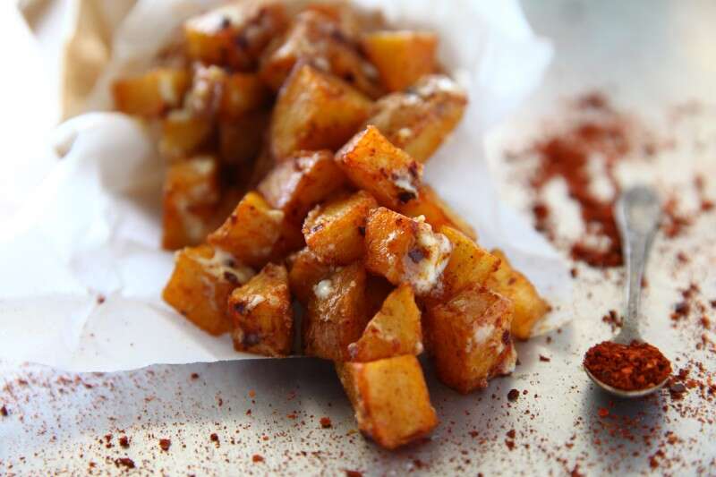 קוביות צ'יפס עם איולי פפריקה מעושנת ושום (פטאטס בראווס)