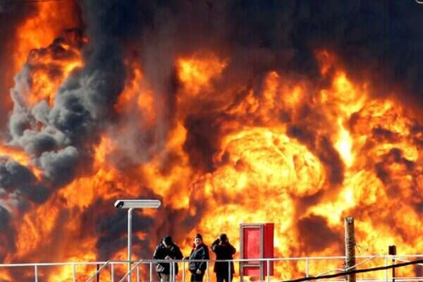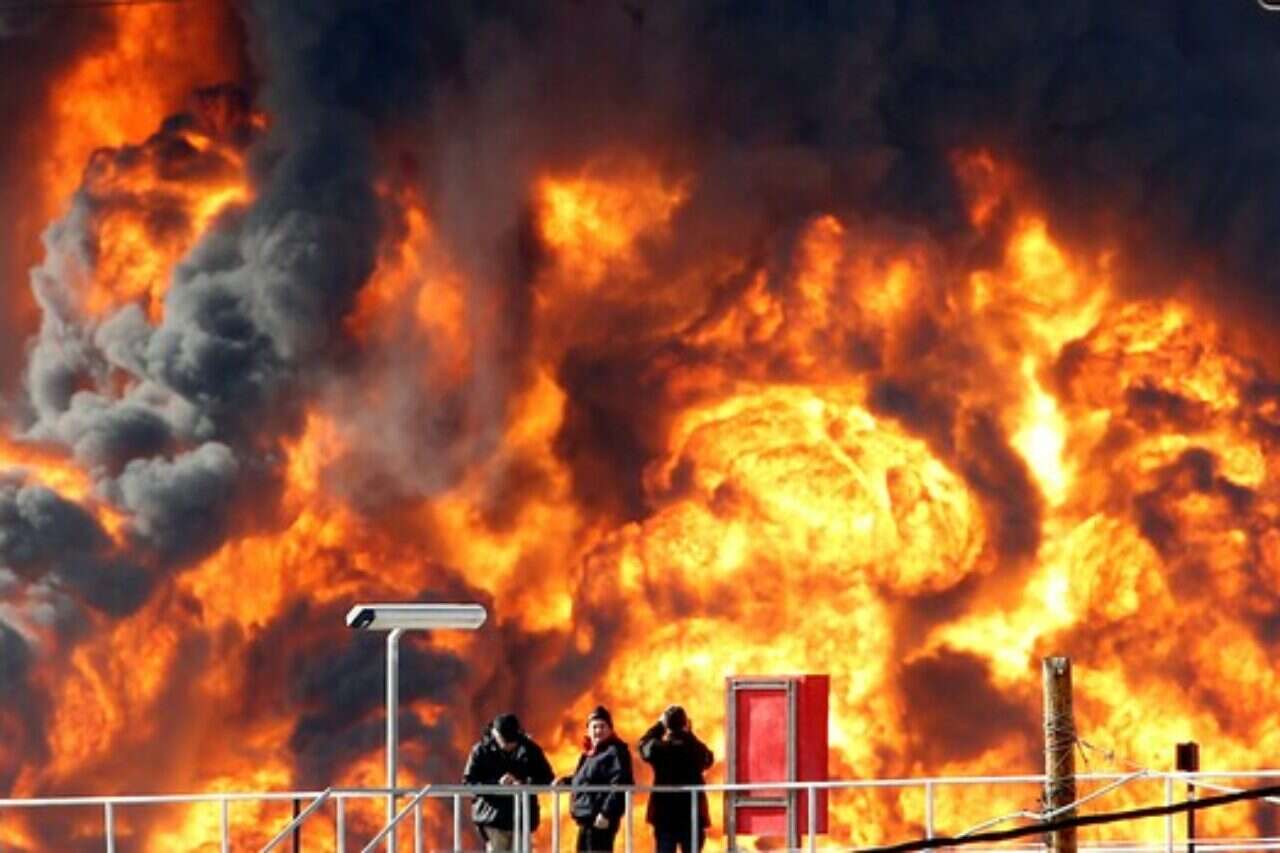 09:30, מתחם בתי הזיקוק בחיפה • שריפה פורצת במיכל דלק, והשמיים נצבעים בשחור • יותר מ־120 כבאים נאבקים בלהבות - ומונעים אסון גדול בהרבה • הערכה: הגורם - חשמל סטטי במיכל • גורמים במערך הכיבוי: אלמלא הגשם והקור, היתה מתרחשת טרגדיה עצומה • התושבים: "זו חבית חומר נפץ"