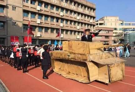 A high school in Taiwan drew harsh criticism Sunday after photographs of its students in Nazi uniforms surfaced on social media. According to the Taipei Times, the images were taken at Hsinchu Kuang Fu High School, a private school in Hsinchu City. The students can be seen dressed as Nazi soldiers, standing in formation, marching and waving swastika flags. The students' history teacher can also be seen in one of the photos, dressed as Adolf Hitler, while another student is seen riding a cardboard tank and performing a Nazi salute. The photos went viral, triggering widespread criticism from the Israeli mission in Taiwan, and several government officials. The Israeli Economic and Cultural Office in Taipei, which represents Israel's interests in Taiwan in the absence of bilateral diplomatic ties, issued a statement condemning the incident. "It is deplorable and shocking that seven decades only after the world had witnessed the horrors of the Holocaust, a high school in Taiwan is supporting such an outrageous action as we witnessed yesterday at Hsinchu Kuang Fu Senior High School. We strongly condemn this tasteless occurrence and call on the Taiwanese authorities, at all levels, to initiate educational programs which would introduce the meaning of the Holocaust and teach its history and universal meaning. Israel would support such endeavors as may be necessary," a statement by Israeli envoy to Taiwan Asher Yarden said. The Taiwanese Presidential Office has launched an investigation into the incident, calling it "regrettable." "We feel it was extremely disrespectful to the Jewish people who had been victims of the oppression perpetrated during wars, but more importantly, it highlighted ignorance about history. The responsibility of an education facility is to teach students that peace and diversity did not come easily. The freedom of thinking should be based on justice and respect, rather than misconduct. "Education authorities should require the school to shoulder responsibility by seriously reflecting on the incident, understand and improve education in related fields of study, and apologize to the countries it offended," it said in a statement. Taiwan's Education Ministry expressed "astonishment and regret," over the incident, while Education Minister Pan Wen-chung apologized, urging all schools in Taiwan to learn a lesson from the incident. The Taiwan News reported that the school apologized, saying it had "failed to do the necessary review beforehand." The school reportedly promised such incidents would not happen again.