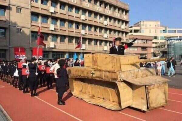 A high school in Taiwan drew harsh criticism Sunday after photographs of its students in Nazi uniforms surfaced on social media. According to the Taipei Times, the images were taken at Hsinchu Kuang Fu High School, a private school in Hsinchu City. The students can be seen dressed as Nazi soldiers, standing in formation, marching and waving swastika flags. The students' history teacher can also be seen in one of the photos, dressed as Adolf Hitler, while another student is seen riding a cardboard tank and performing a Nazi salute. The photos went viral, triggering widespread criticism from the Israeli mission in Taiwan, and several government officials. The Israeli Economic and Cultural Office in Taipei, which represents Israel's interests in Taiwan in the absence of bilateral diplomatic ties, issued a statement condemning the incident. "It is deplorable and shocking that seven decades only after the world had witnessed the horrors of the Holocaust, a high school in Taiwan is supporting such an outrageous action as we witnessed yesterday at Hsinchu Kuang Fu Senior High School. We strongly condemn this tasteless occurrence and call on the Taiwanese authorities, at all levels, to initiate educational programs which would introduce the meaning of the Holocaust and teach its history and universal meaning. Israel would support such endeavors as may be necessary," a statement by Israeli envoy to Taiwan Asher Yarden said. The Taiwanese Presidential Office has launched an investigation into the incident, calling it "regrettable." "We feel it was extremely disrespectful to the Jewish people who had been victims of the oppression perpetrated during wars, but more importantly, it highlighted ignorance about history. The responsibility of an education facility is to teach students that peace and diversity did not come easily. The freedom of thinking should be based on justice and respect, rather than misconduct. "Education authorities should require the school to shoulder responsibility by seriously reflecting on the incident, understand and improve education in related fields of study, and apologize to the countries it offended," it said in a statement. Taiwan's Education Ministry expressed "astonishment and regret," over the incident, while Education Minister Pan Wen-chung apologized, urging all schools in Taiwan to learn a lesson from the incident. The Taiwan News reported that the school apologized, saying it had "failed to do the necessary review beforehand." The school reportedly promised such incidents would not happen again.