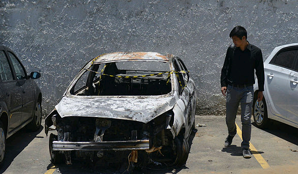 הרכב השרוף בו אותרה גופת השגריר // צילום: אי.אף.פי