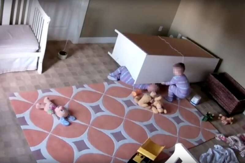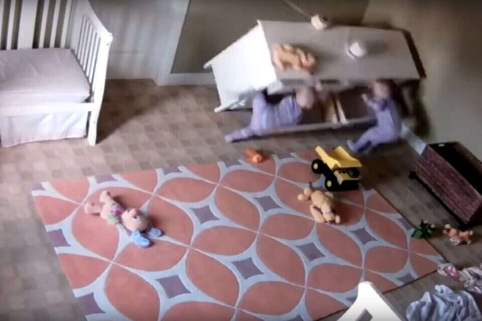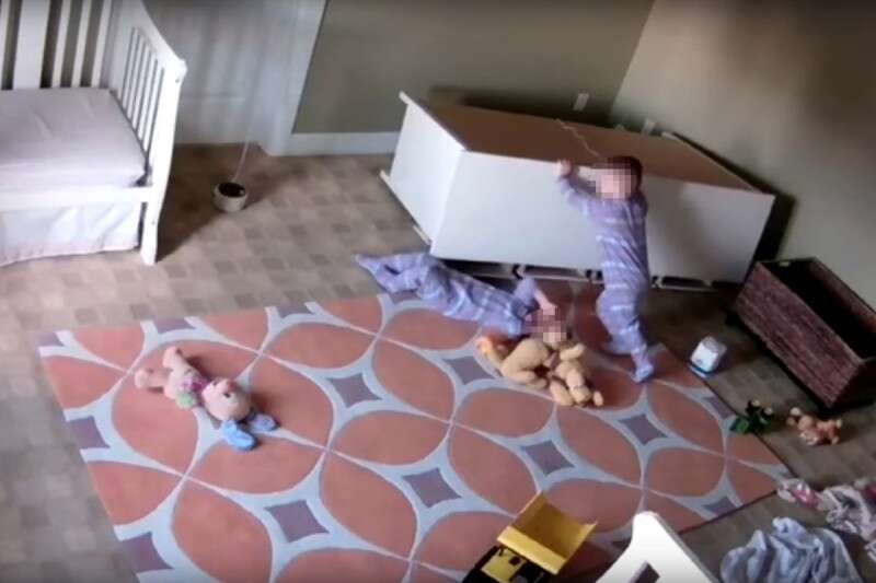לפני התקרית המסוכנת (ראו תמונות) טיפסו האחים באודי וברוק שוף על מגירות השידה עד שזו נפלה לפתע על ברוק, כפי שקלטו מצלמות המעקב.