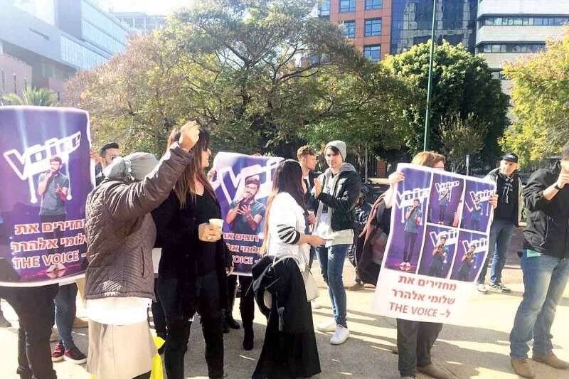 הקול בראש. כל אחד ומה שמטריד אותו: בזמן שמאות הפגינו בקריה לטובת החייל אלאור אזריה, התקבצו גם כמה בודדים להפגין מול בניין הזכיינית רשת ברמת החייל נגד הדחת המתמודד שלומי אלהרר מ"דה וויס".