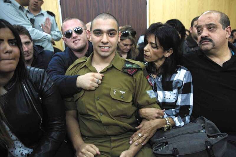 שבורים, אבל מאמינים. אלאור אזריה ומשפחתו בבית הדין // צילום: אי.פי