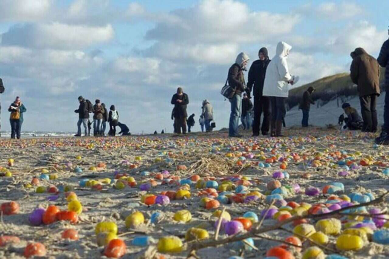 הפתעה זאת התרחשה לאחר שספינת משא דנית איבדה במהלך הסערה הימית כמה מכולות, כולל אחת שבה היו ביצי ההפתעה ובהן צעצועים של חיות מפלסטיק.
