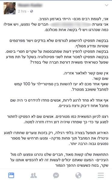 צוערת שהייתה במקום שיתפה הערב פוסט בפייסבוק, שפתח במילים: "אני לעומת רבים מכן הייתי מקום". הצוערת הוסיפה, ואמרה: "חברים שלי נפצעו, ויש כמה שנהרגו - אל תקשיבו לאנשים שמפרסמים מידע מסולף".